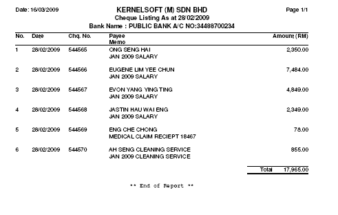 Cheque History & Report Printing